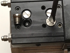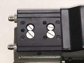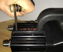 Remove the two larger slotted sealing plugs as shown above.Note, use an extra wide flat tip screw driver.If the sealing nut is made of brass, be careful not to damage the slot.